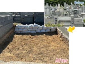 小倉北区地域墓地にて、ご遺骨のないお墓の解体工事。ご指定に沿った施工・仕上げ