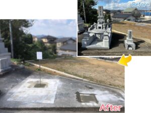 ホームページをご覧いただきまして、誠にありがとうございます。北九州・京築エリアにてお墓や石材に関するお仕事をさせていただいております、ひびき工房です。若松区の地域墓地にて、お墓じまいをお任せいただきましたので、ご紹介いたします。