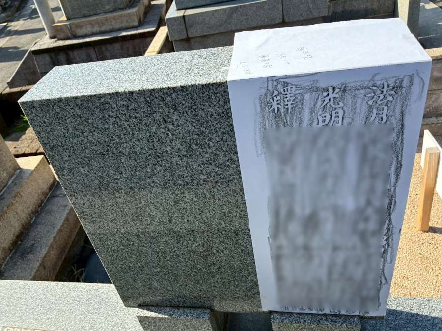 八幡東区地域墓地にて、お墓へのお名前彫刻と色の入れ替え