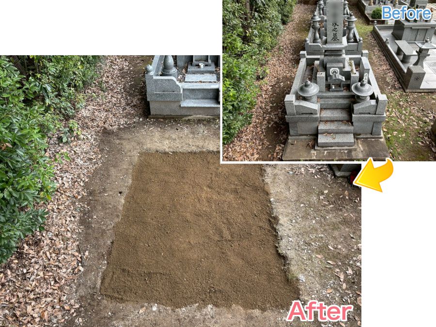 お墓じまいの法要(閉眼供養等)の日に、当店スタッフが立ち合い、お墓から遺骨を出す作業を行います。お墓から取り出したご遺骨は、改葬先にお持ちください(ご希望があればお送りのお手伝いもいたします)